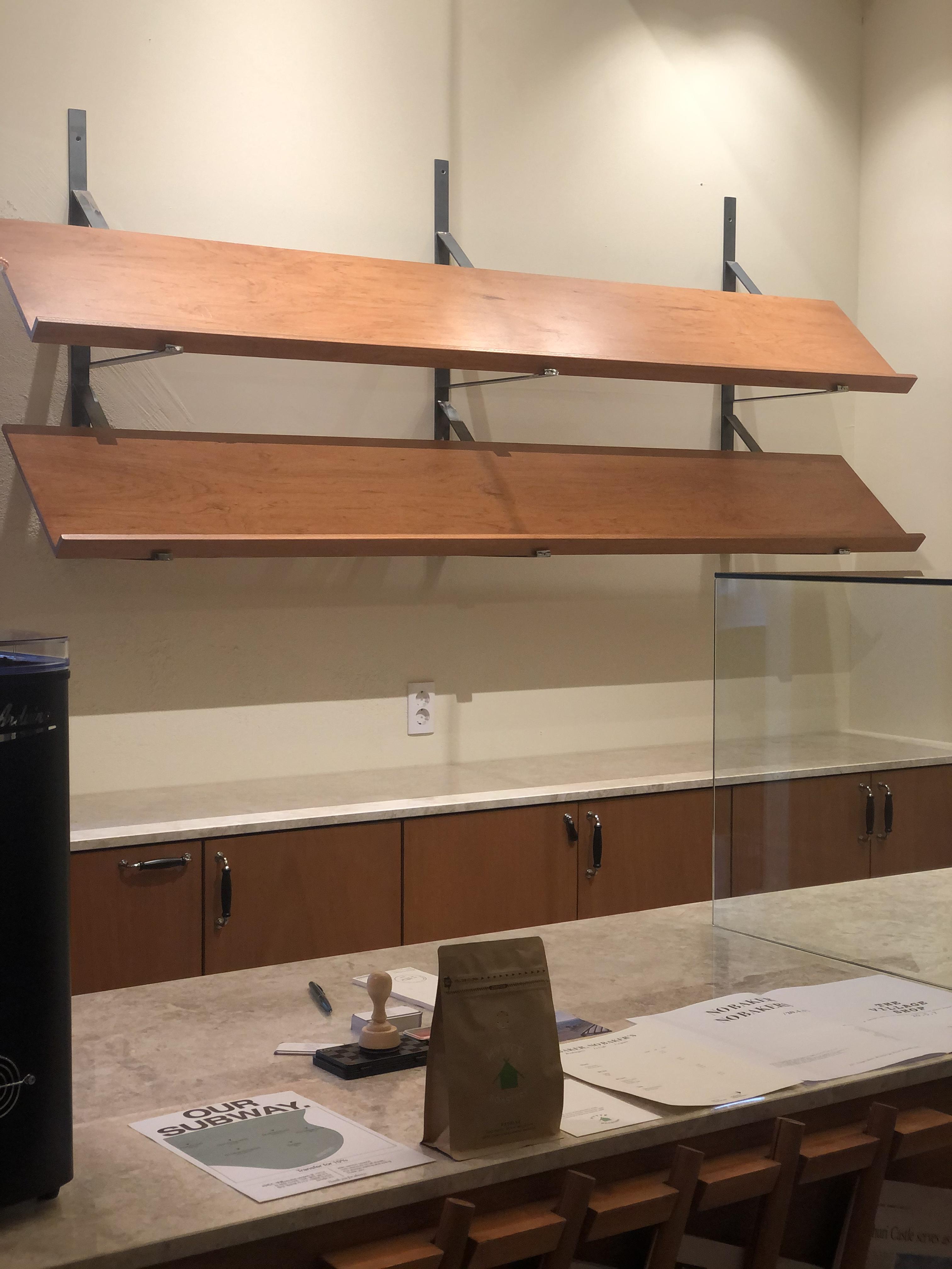 카운터 신문꽂이? 나무로 하니까 느낌있네요.