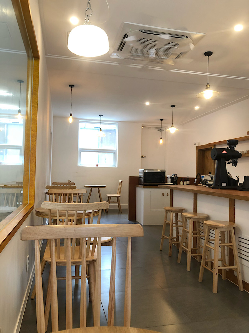 입구 큰 창 앞 의자와 바 테이블도 있으니