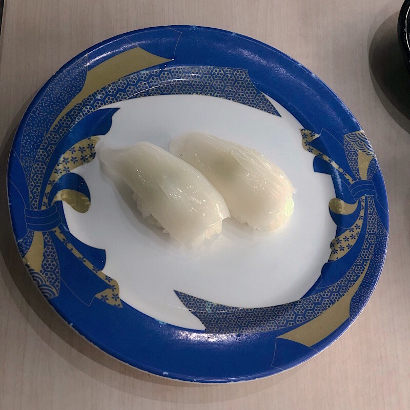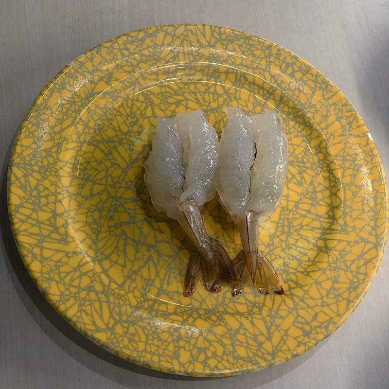 연어 뱃살로 보이는 초밥은 접시에 1피스만 있어요.