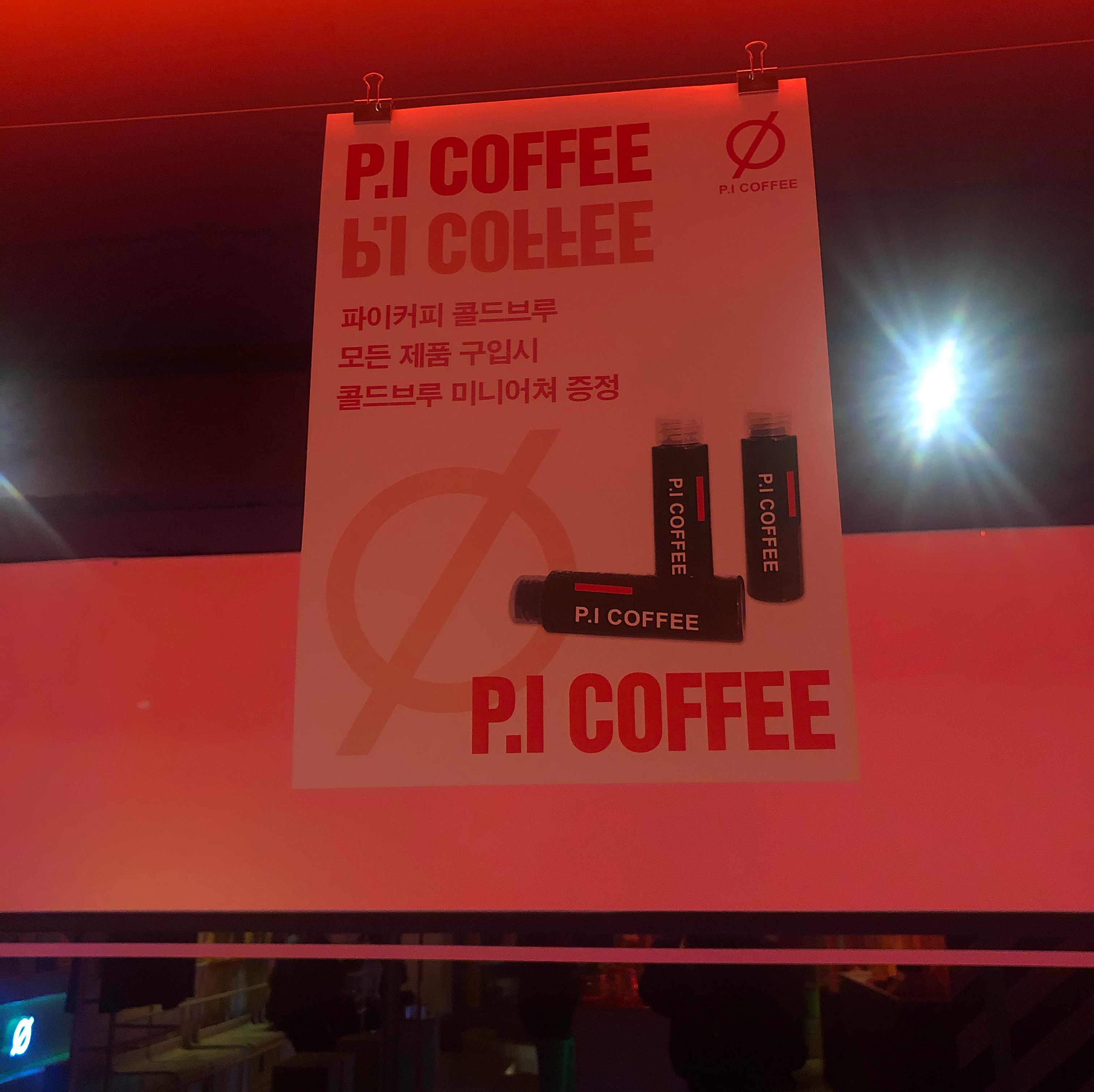 카운터 조명이 인상적인데 네온사인을 와이어액자로 고정했더라구요.
