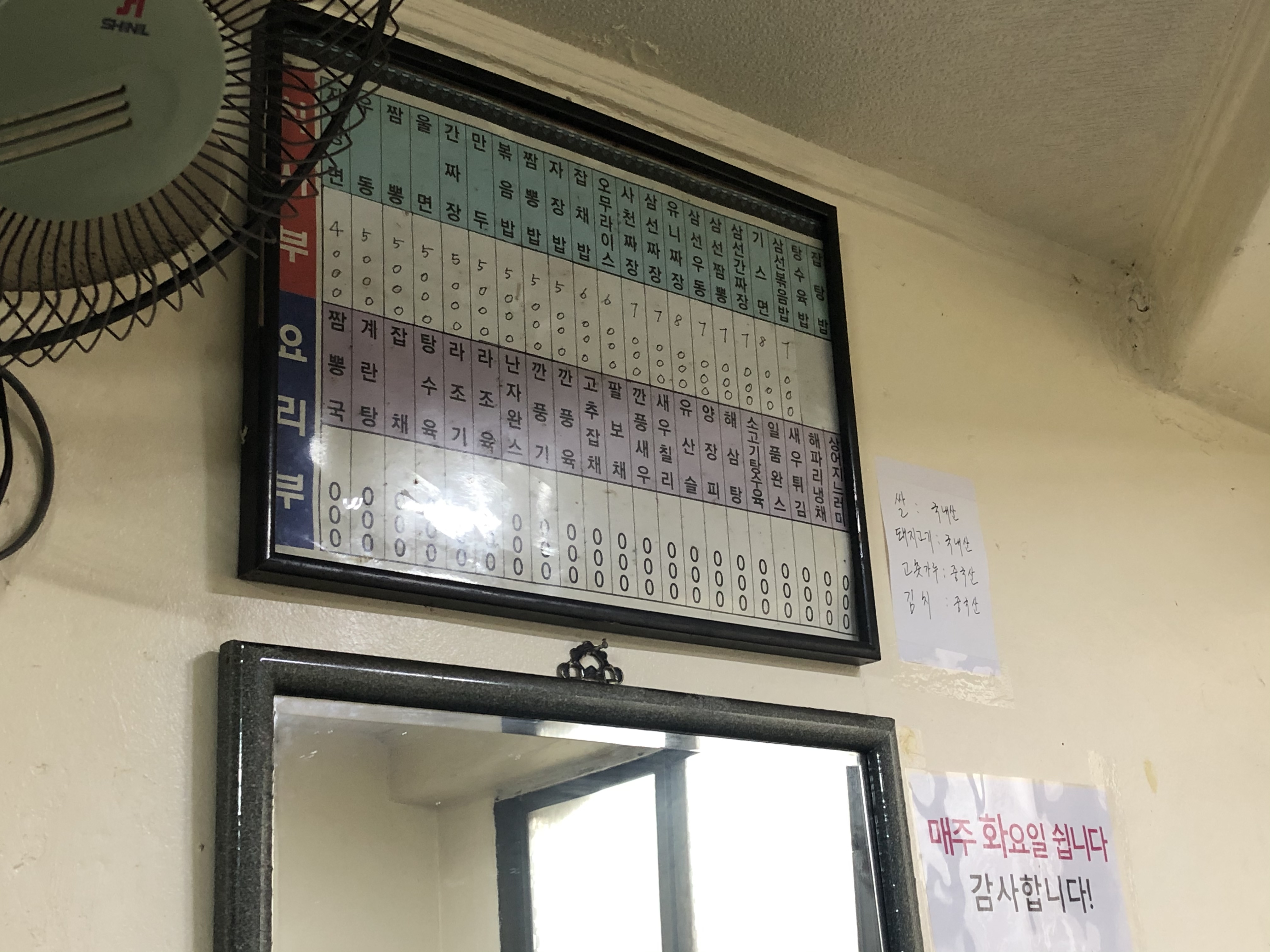 백객도 메뉴판은 홀에 하나 있습니다.