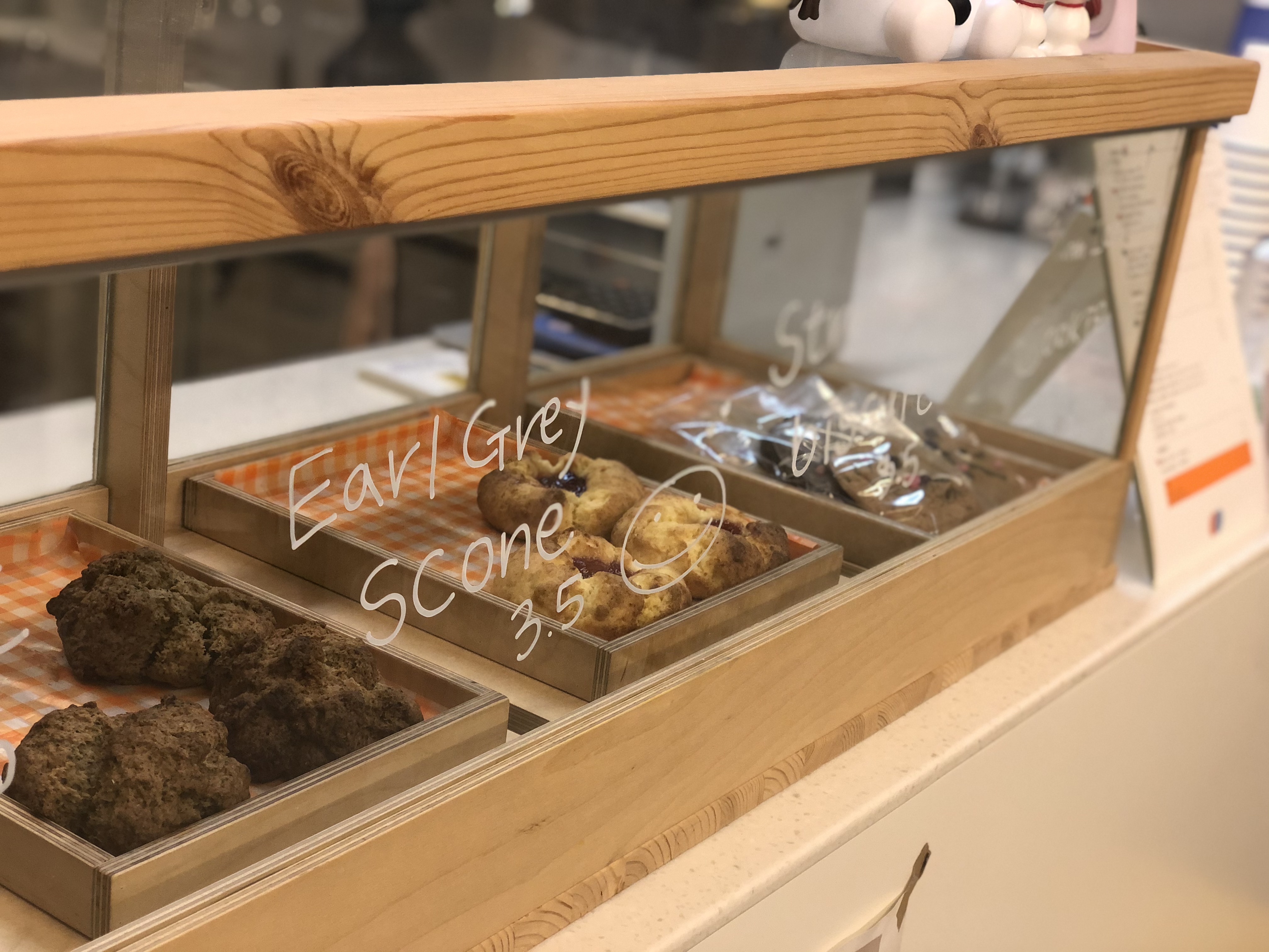 직접 구운 스콘, 딸기 비스킷, 쿠키 준비되어있어요.