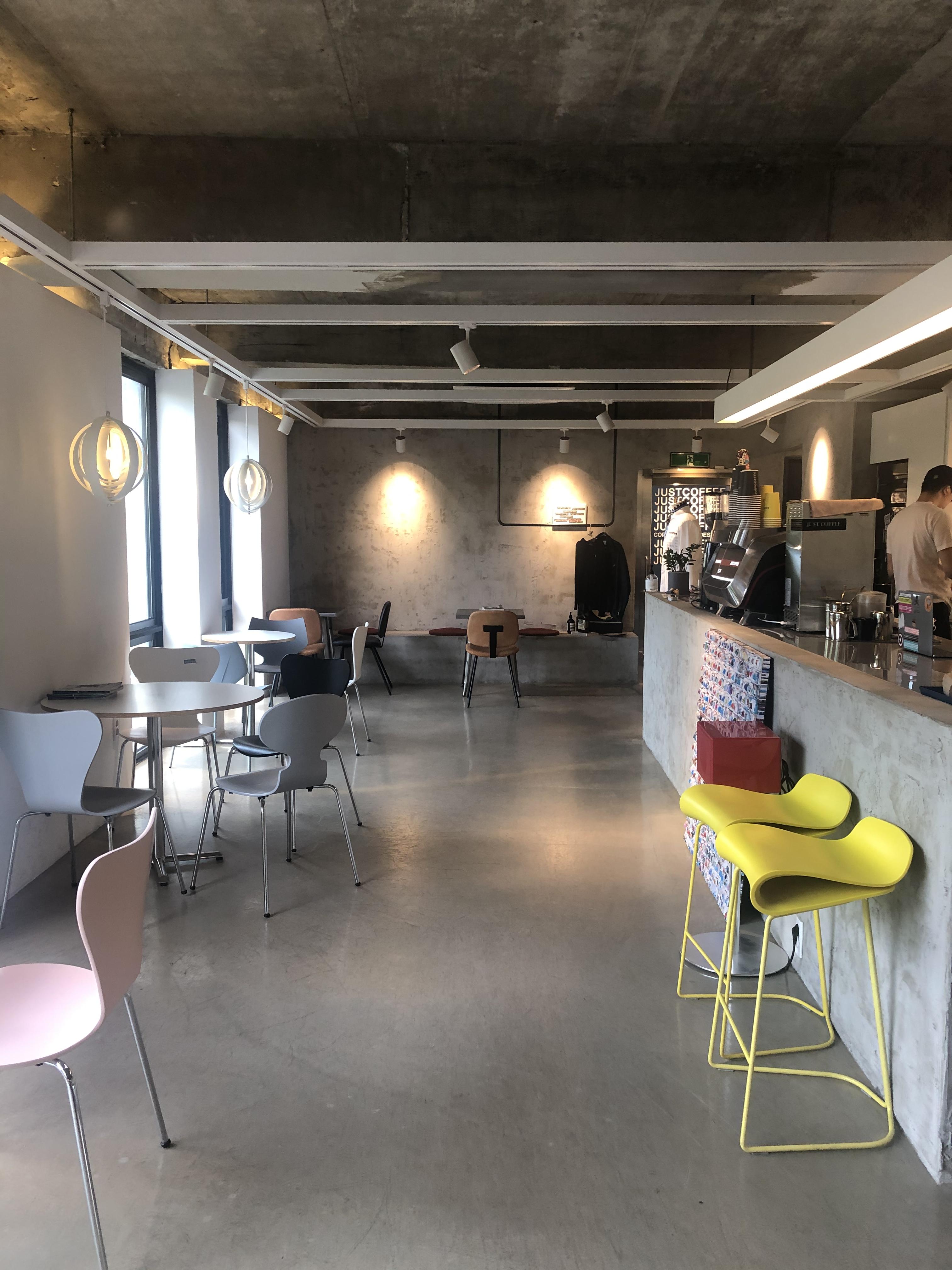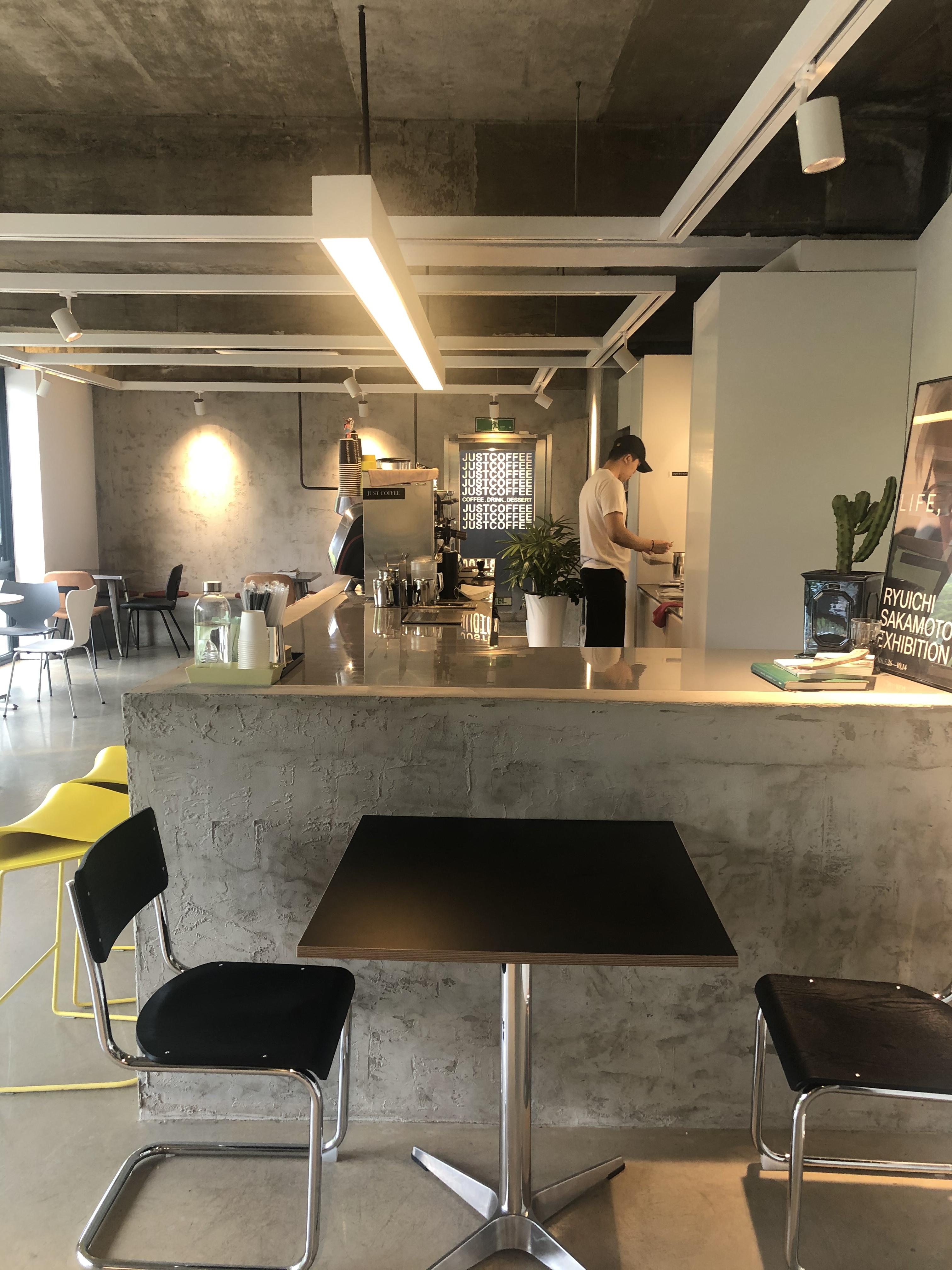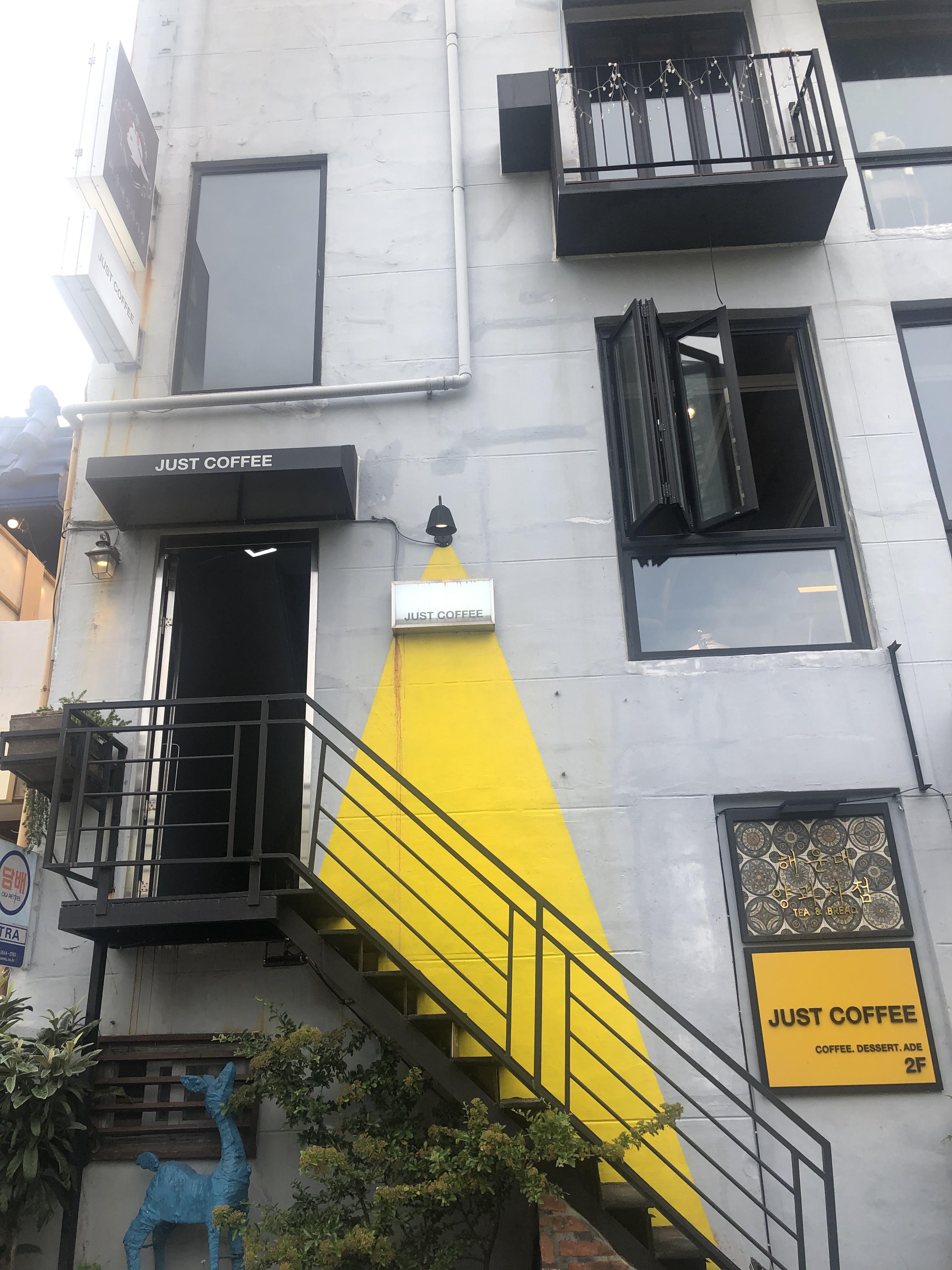 저스트커피 1호점 범내골점 2층 캠핑 느낌. 애견 동반 가능