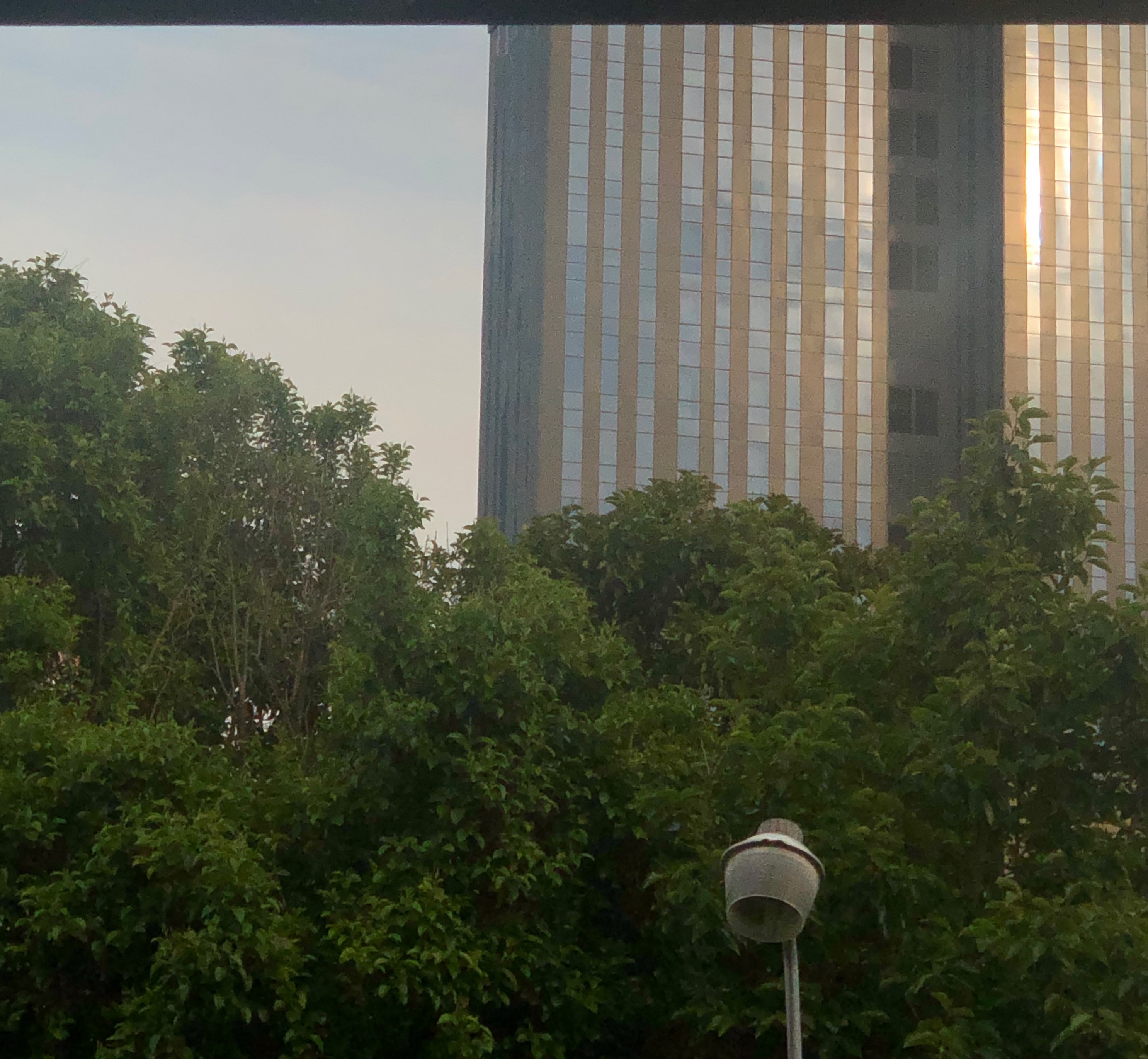 바깥 창 밖으로 나무랑 빌딩이 보여서 뷰가 이뻐요.
