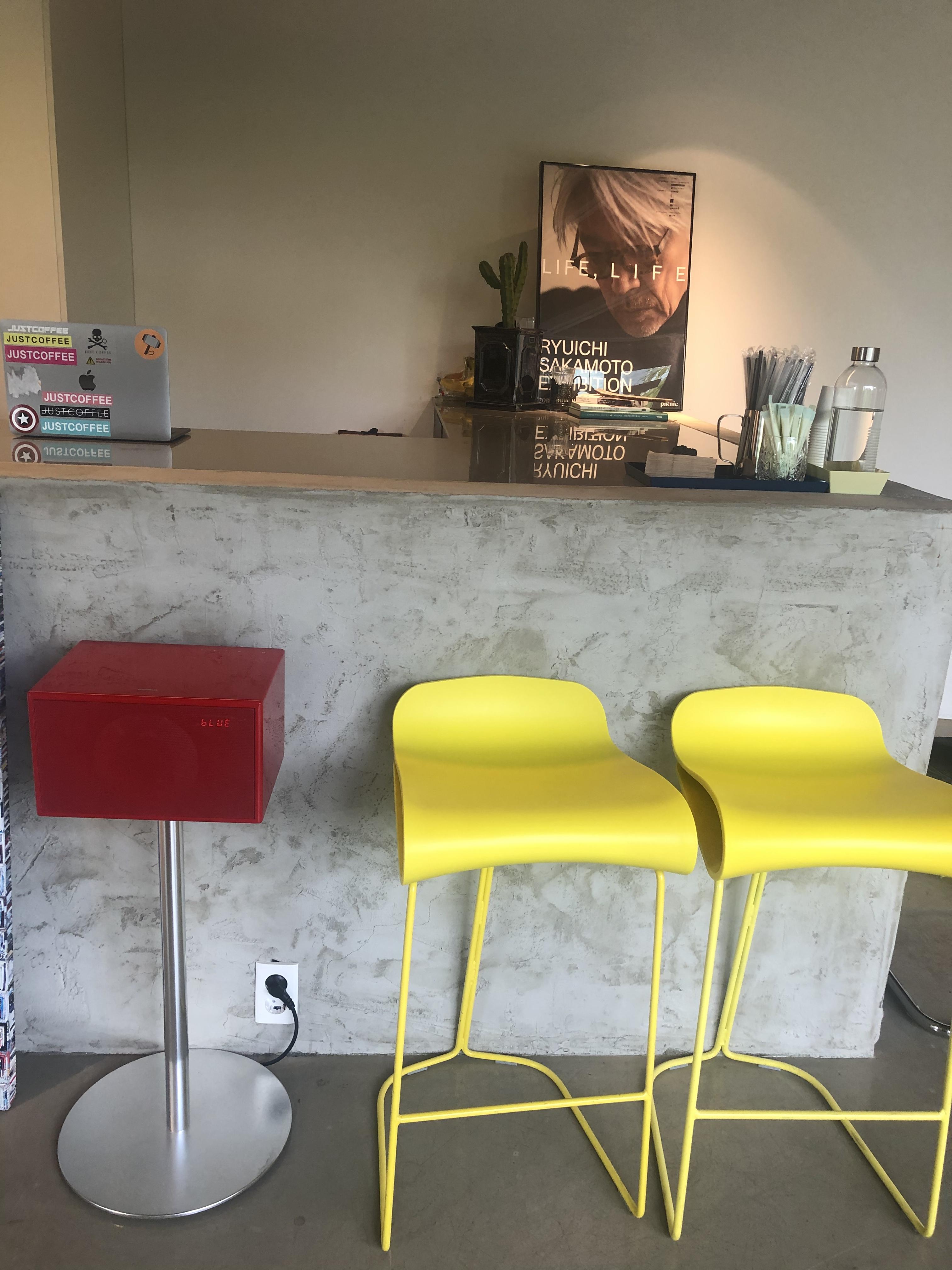 바 의자는 뒤집어져 있네요. 카운터를 등지고 앉는 자린가..