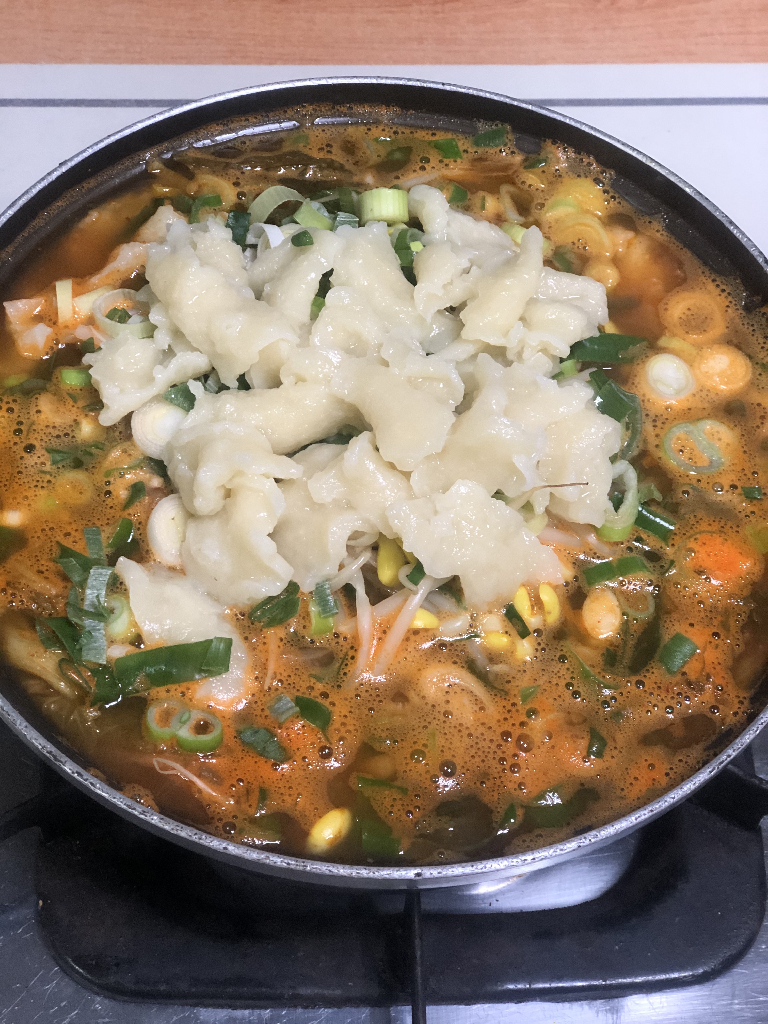 기본적으로 감자탕을 주문하면 위에 수제비가 올라갑니다.