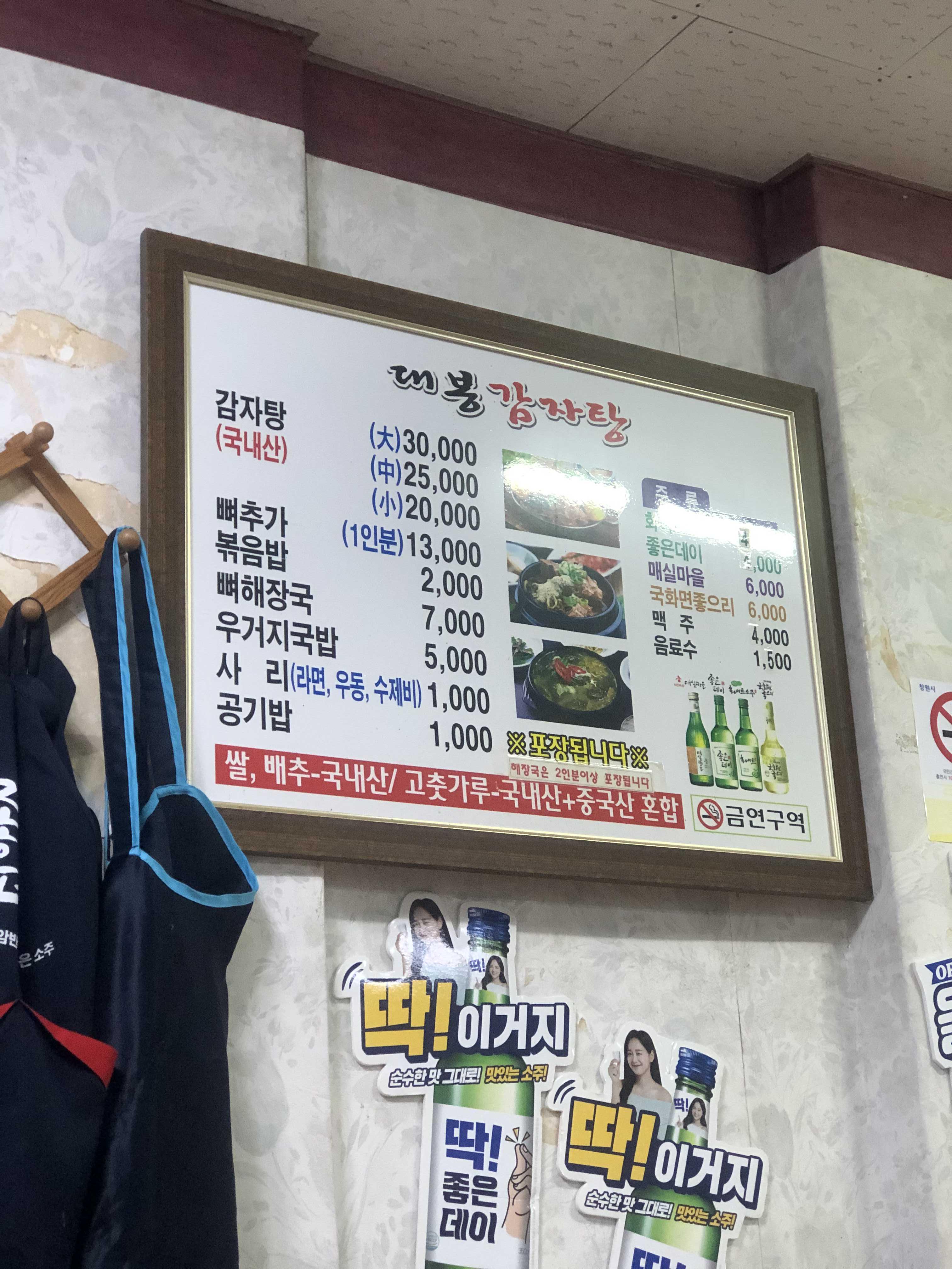 감자탕과 반찬, 밥은 국내산을 쓰고 고춧가루만 중국산을 섞어 쓰신다고 해요.