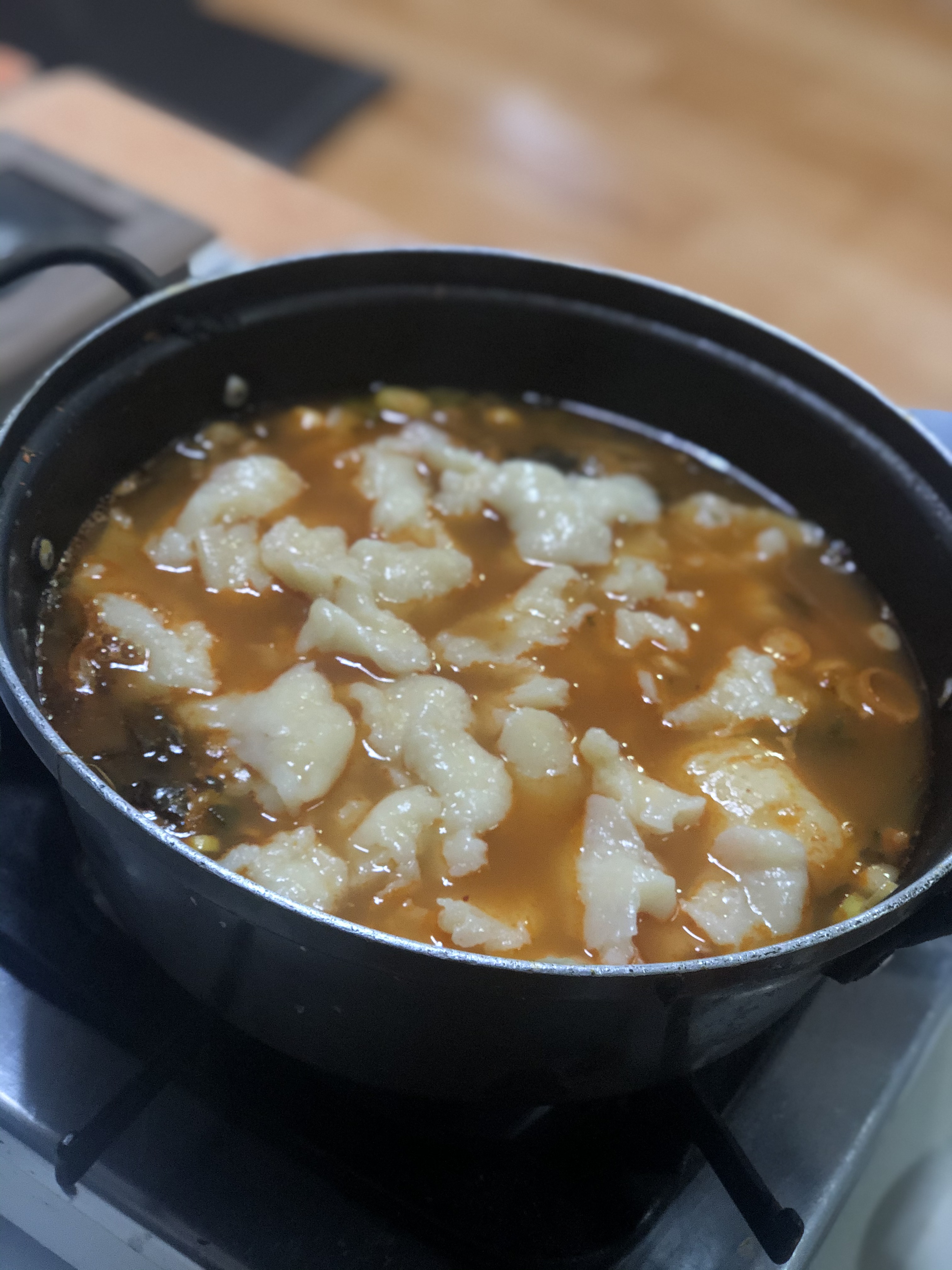 고기 다 먹고 수제비가 좀 아쉬워서 수제비 사리 추가했어요. 수제비 사리 1,000원인데 진짜 많이 주셨어요. 거의 수제비 두 그릇 나올 만큼..