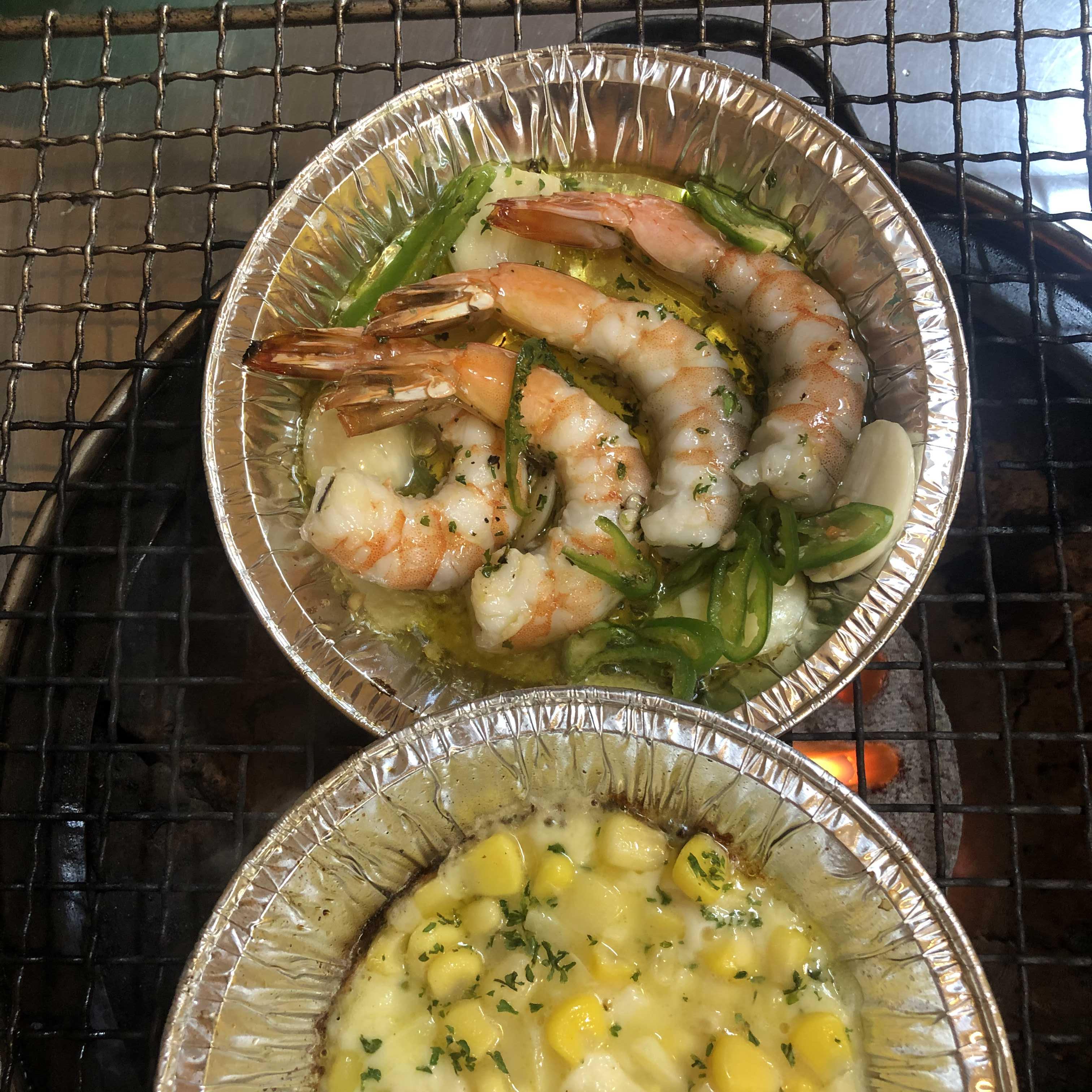 장어구이, 새우구이, 감바스, 전복구이가 있어요.