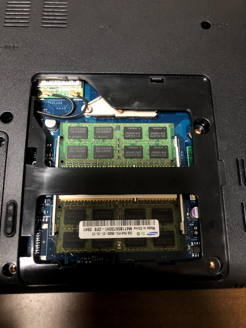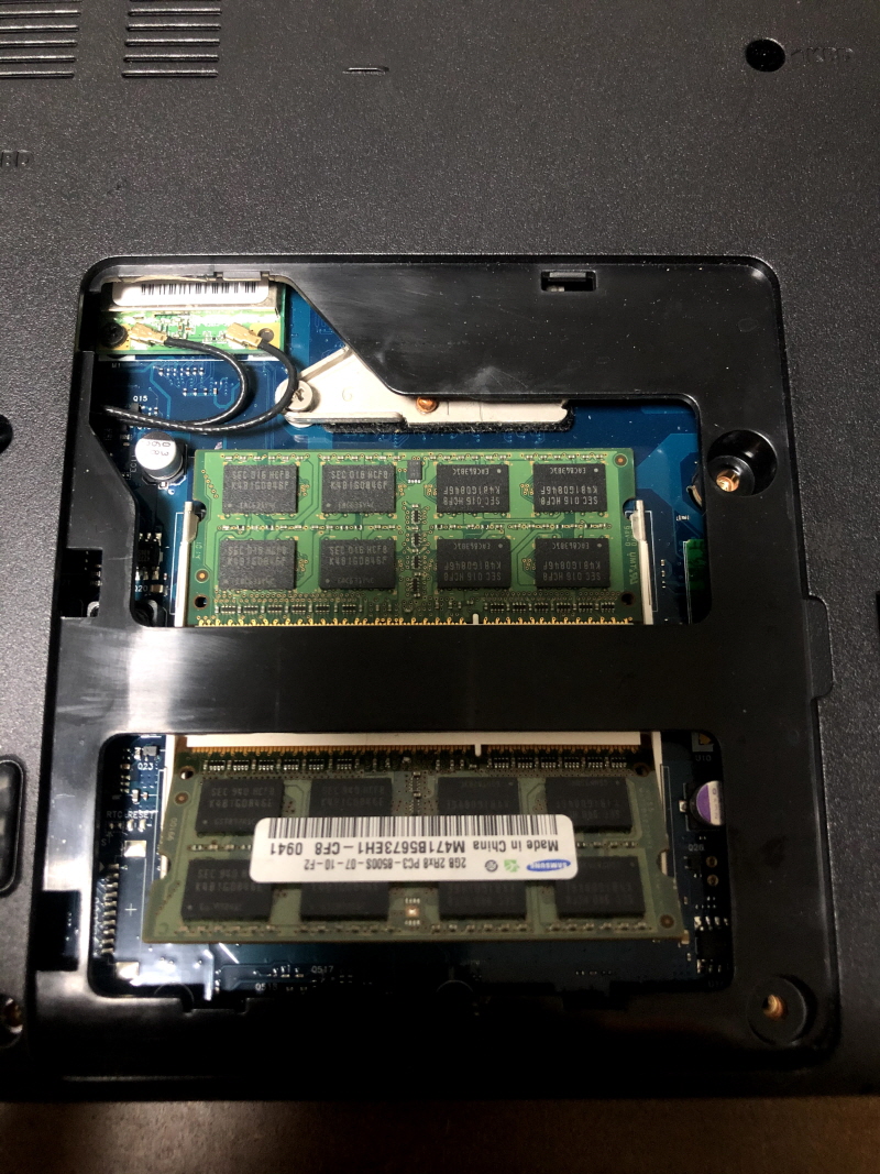 기존 2GB 램이 꽂혀있네요. 그리고 아래에 램 추가할 수 있게 슬롯이 비어 있네요.
