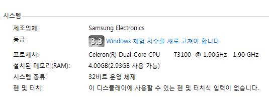 CPU : 셀로론 듀얼코어 , T3100@1.90 GHz