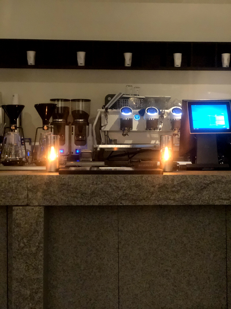 테이블은 바 테이블과 소파 테이블로 나누어져 있어요. 소파 테이블은 약 9개, 테이블당 스툴이 배치되어있어서 2-3인으로 앉을 수 있어요.