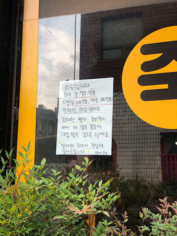 재료 소진이라고 문 앞에 적혀있는 거예요.